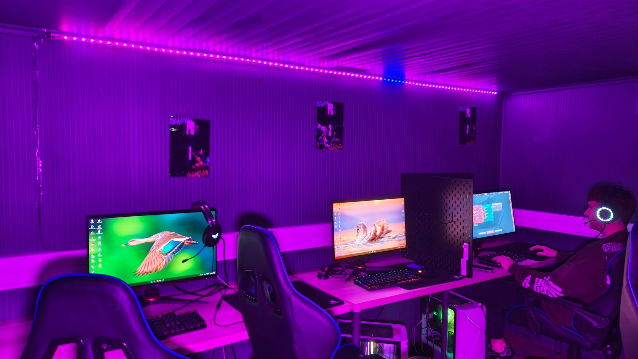 La salle où se situe la majorité des pc ! Celle ci est décorée avec de nombreuses leds pour proposer une immersion totale dans l’univers du gaming